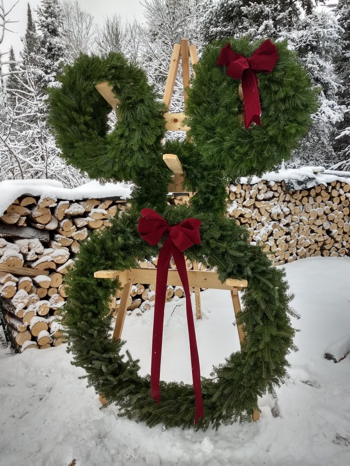 Wholesale customers choose “natural” or undecorated products by far the most, but we can decorate with a simple bow, or dress up further with pine cones, frosted pine cones and berries. We have many ribbon types to choose from as well should you want something other than standard “Red Velvet.” Other ribbon examples are Red with Gold back, Burgundy, White with Cardinals, and more. We can accommodate orders in any quantity, from 3 to 3000.
